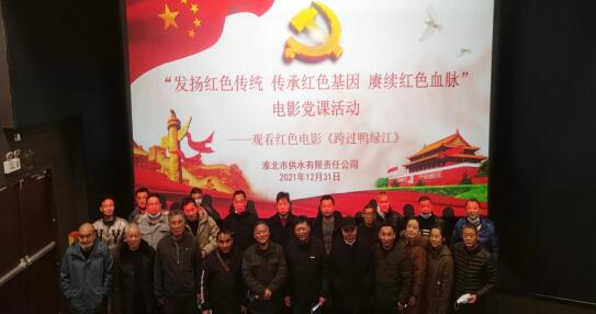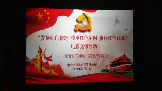 為進一步把黨史學習教育走深走實,傳承革命精神,2021年12月31日,供水公司組織黨員開展“發揚紅色傳統,傳承紅色基因,賡續紅色血脈”電影黨課活動,集中觀看紅色電影《跨過鴨綠江》。
