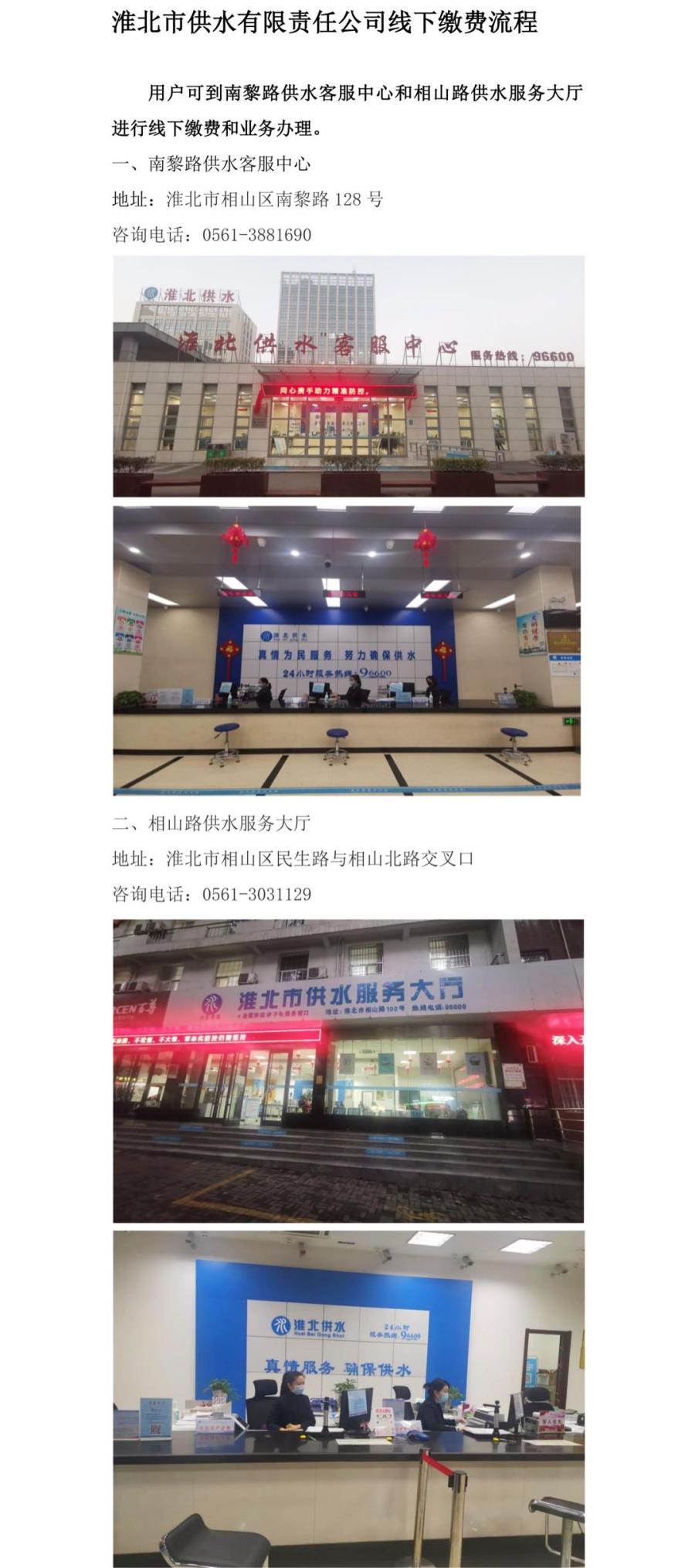 淮北市供水有限公司線下繳費流程