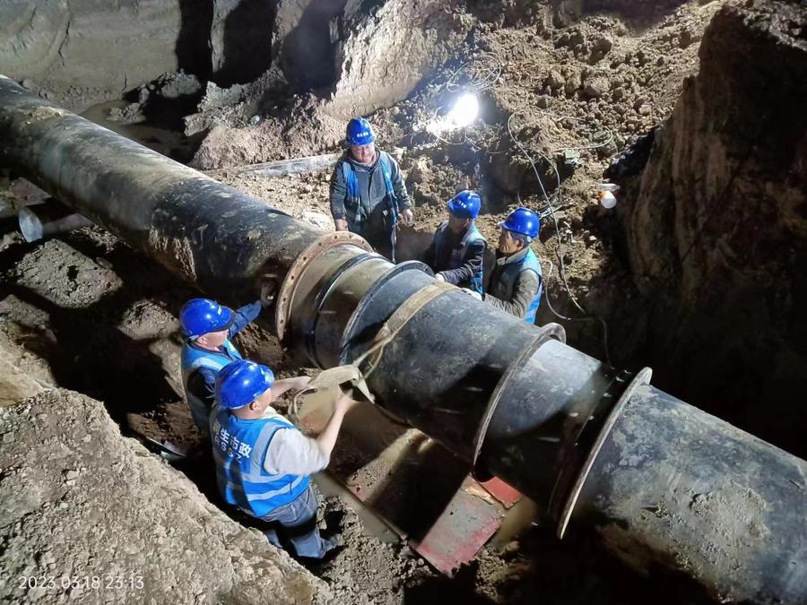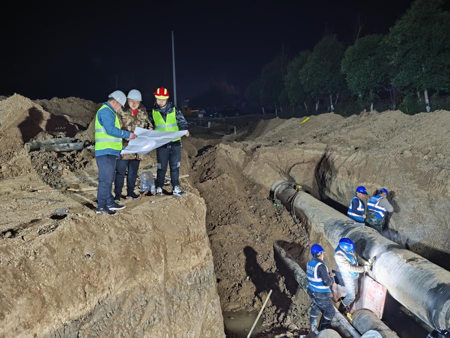 因施工影響導(dǎo)致管網(wǎng)沿線區(qū)域短暫停水,市水務(wù)集團(tuán)前期通過(guò)媒體、網(wǎng)站、微博等平臺(tái)進(jìn)行宣傳告知。企業(yè)用戶逐一上門進(jìn)行通知,優(yōu)化施工方案,施工物資提前調(diào)配,錯(cuò)峰施工,把因停水給企業(yè)生產(chǎn)和居民用水帶來(lái)的影響降至最小。為保證管網(wǎng)遷改的順利進(jìn)行,水務(wù)集團(tuán)供水公司組建專業(yè)力量針對(duì)每個(gè)遷改點(diǎn)制訂了詳細(xì)的工作預(yù)案、專項(xiàng)施工方案和應(yīng)急預(yù)案,明確涉及遷改的相關(guān)工作要求,提升工作效率,確保工程質(zhì)量和施工安全。公司管網(wǎng)管理部多次確認(rèn)管線位置走向并開(kāi)展技術(shù)交底。對(duì)于預(yù)埋管道交叉的部分采用人工探挖,對(duì)開(kāi)挖到的第三方管線采取有效的保護(hù)措施,待管線探明后采用機(jī)械開(kāi)挖,確保施工現(xiàn)場(chǎng)安全有序。施工中,加強(qiáng)與業(yè)主和監(jiān)理就突發(fā)狀況的溝通和協(xié)調(diào),加強(qiáng)施工現(xiàn)場(chǎng)工程質(zhì)量和安全監(jiān)督,完善過(guò)程資料,優(yōu)化細(xì)化遷改工序。做好停水計(jì)劃,將停水時(shí)間縮減到最短,停水范圍優(yōu)化到最小。項(xiàng)目遷改DN800管道口徑,總長(zhǎng)度110米。公司投入3施工隊(duì),40余人,采用分段式施工,其中白天進(jìn)行開(kāi)挖、鋪設(shè)、遷移等工序。為了把因停水給居民帶來(lái)的影響降至最小,管網(wǎng)碰頭、合攏等采取夜間停水施工。供水管網(wǎng)的讓道不僅保障了淮宿蚌城際鐵路(淮北段)建設(shè)的順利推進(jìn),而且改遷后的供水管線質(zhì)量、沿線水質(zhì)、水壓安全穩(wěn)定。