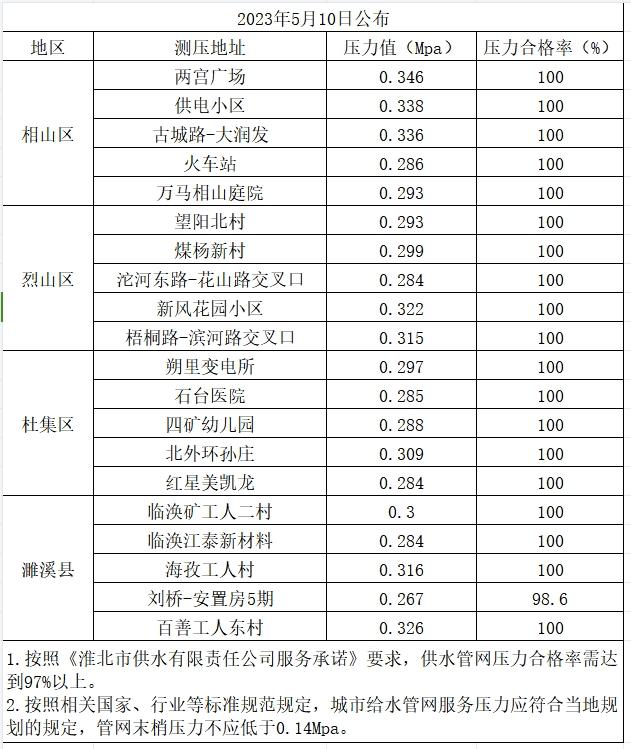 2023年5月10日水壓信息公開