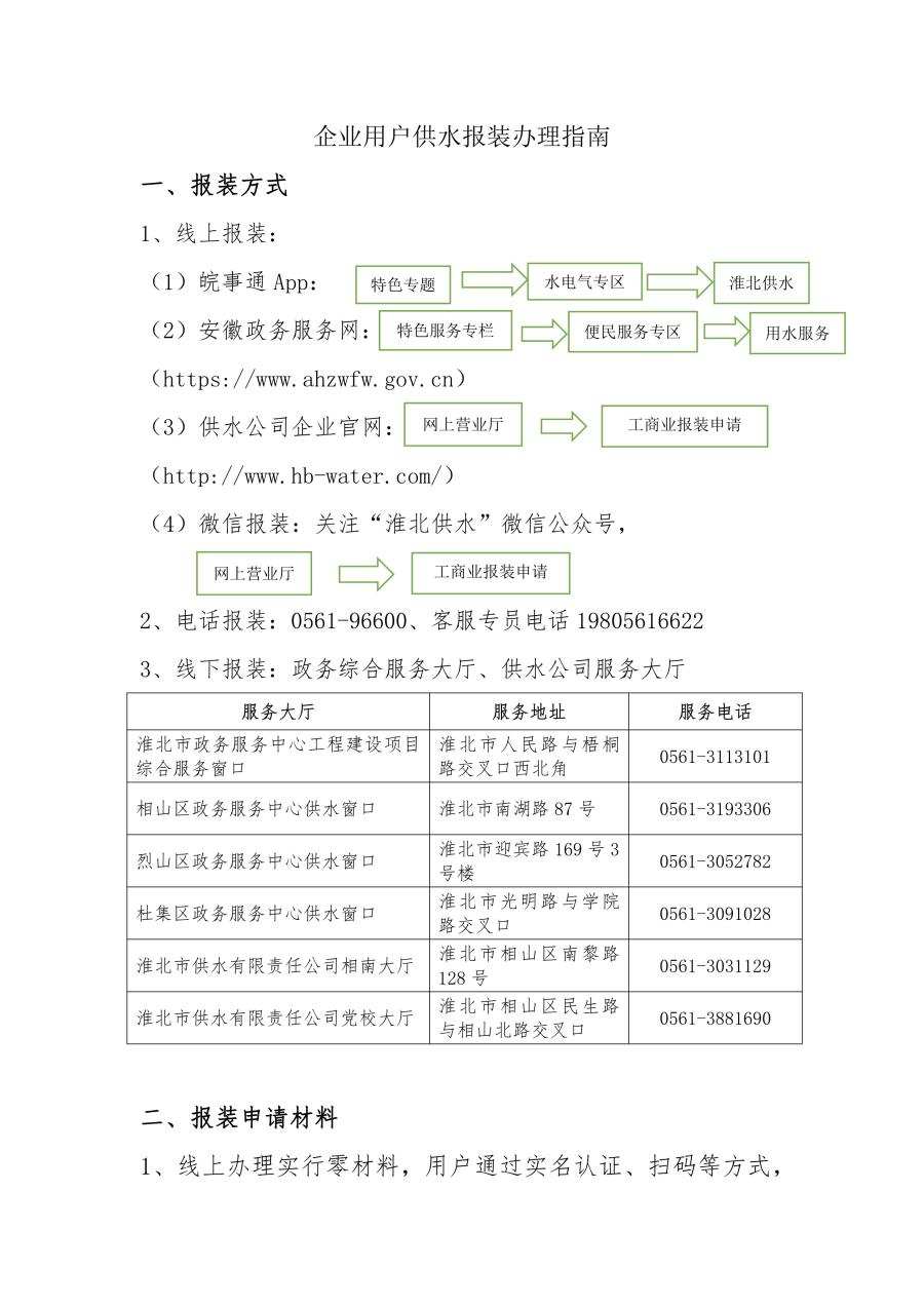 工商業(yè)企業(yè)供水報裝服務指南2023