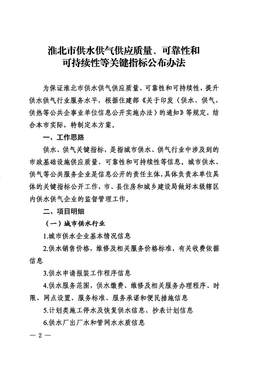 關(guān)于印發(fā)《淮北市供水供氣供應(yīng)質(zhì)量、可靠性和可持續(xù)性等關(guān)鍵指標(biāo)公布辦法》的通知