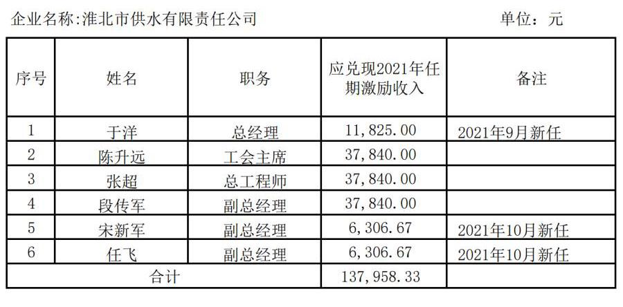 企業負責人2021年任期激勵收入兌現情況表