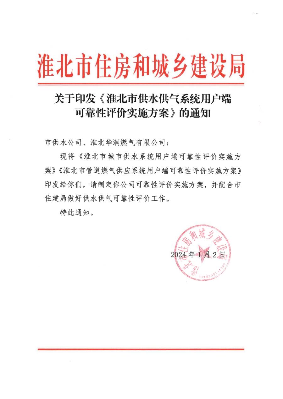 關于印發《淮北市供水供氣系統用戶端可靠性評價實施方案》的通知