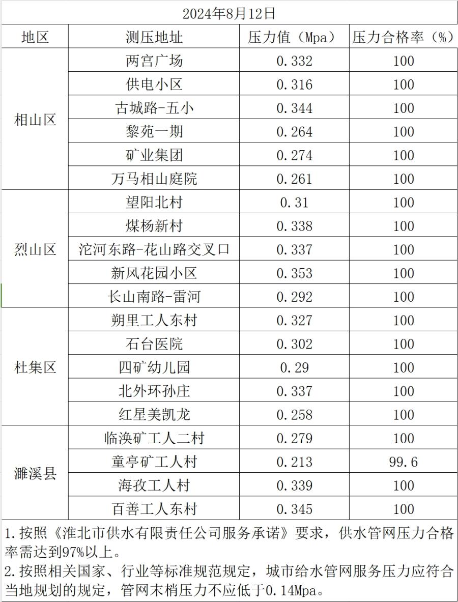 2024年8月12日水壓抽測公示