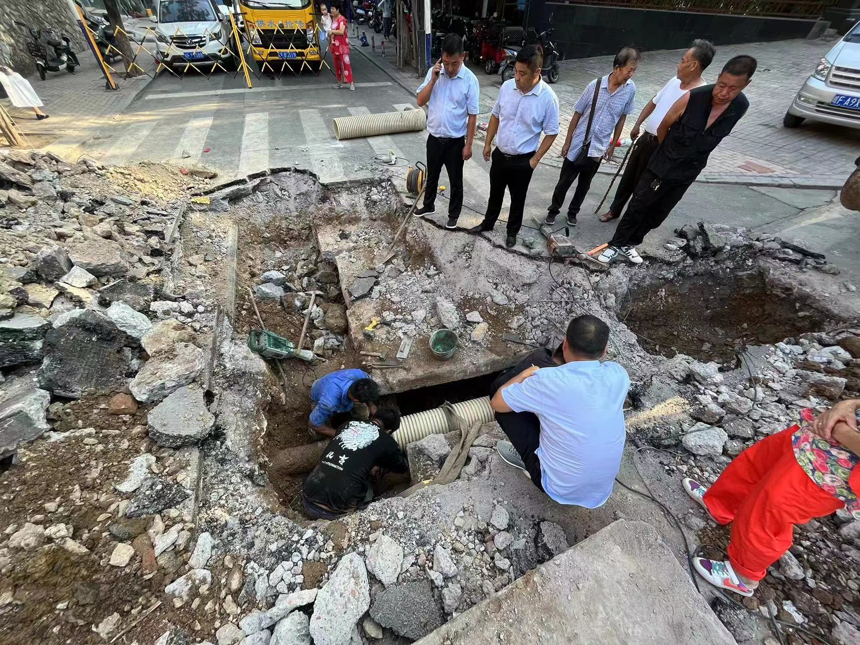管網部立即對漏水點展開了搶修工作,漏水點在環(huán)山西路中間位置。為了過往車輛和施工人員的安全,立即匯報至交警部門,得到批準后對環(huán)山西路進行了封路。搶修工人頂著高溫天氣,經過8個小時的奮戰(zhàn),終于將漏水管道修復完成,確保了居民正常用水。晚上21時,清運多余的余土和開挖溝槽的回填,恢復環(huán)孟西路正常通行。8月18日凌晨1時,瀝清路面恢復完畢,開始清掃、沖刷開挖處路面的污垢。直至凌晨3時,搶修工作全部完成。