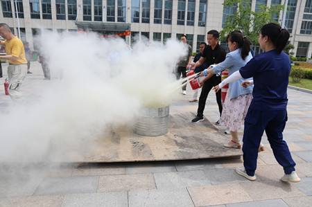 理論培訓(xùn)結(jié)束后,供水公司總工程師張超對(duì)消防演習(xí)進(jìn)行了細(xì)致的部署。隨著消防警報(bào)的拉響,公司員工分別從每個(gè)樓層的安全出口疏散通道東西兩處撤出,拐彎處貼有安全出口標(biāo)識(shí),員工們用時(shí)4分鐘從大樓撤出匯集到公司大樓前空?qǐng)龅靥帯0脖H藛T點(diǎn)燃了事先準(zhǔn)備好的易燃物,消防大隊(duì)張隊(duì)長(zhǎng)給員工們講解了滅火器的使用方法:使用時(shí)可手提或肩扛滅火器迅速趕到火場(chǎng),在距燃燒物6米左右處,拔出保險(xiǎn)銷,手握住開啟壓把,另一手拖住器具,用力捏緊開啟壓把,干粉即從噴口處噴出。剛開始員工們應(yīng)對(duì)燃燒的大火明顯感到緊張和不知所措,隨著演練的深入,員工們逐漸適應(yīng),有相當(dāng)一部分人是第一次現(xiàn)場(chǎng)近距離感受和親自使用滅火器進(jìn)行滅火,大家的情緒始終高漲,都非常珍惜這樣一個(gè)機(jī)會(huì)。在消防演練過程中,各科室積極參與,踴躍練習(xí),使本次消防滅火演練活動(dòng)圓滿完成。
