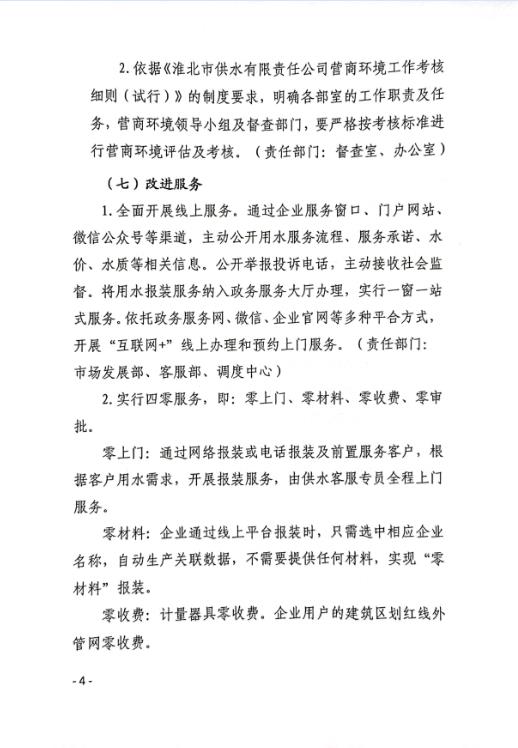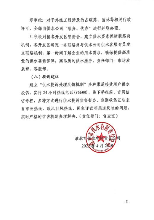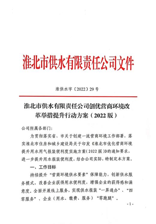 淮北市供水有限責任公司創優營商環境改革舉措提升行動方案2022版